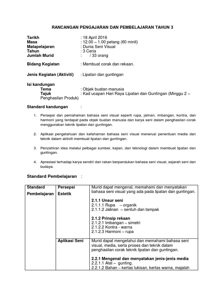 Rph Dsv Tahun 3 Lipatan Dan Guntingan Kad Ucapan Hari Raya Pdf